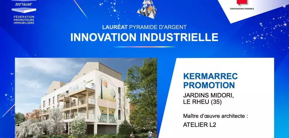 Ce projet lauréat, nommé "Les Jardins Midori", situé sur la commune de Le Rheu, comporte 32 logements en 2 bâtiments.